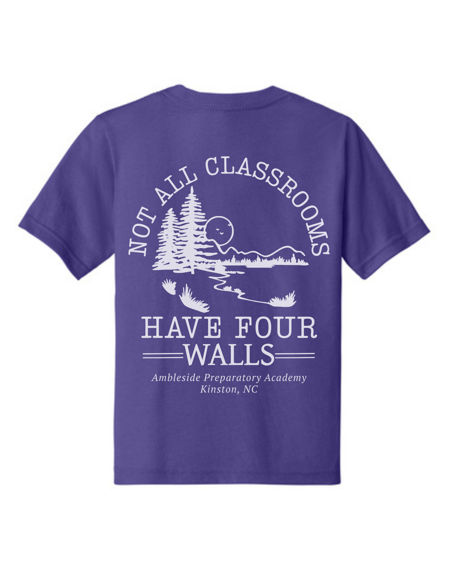 Parents and students asked for more color options — so we’re adding the Next Level Youth CVC Tee to the lineup. It pairs beautifully with our existing District tees and keeps the same Ambleside look you love: the school crest on the front and the “Not all classrooms have four walls” graphic on the back.